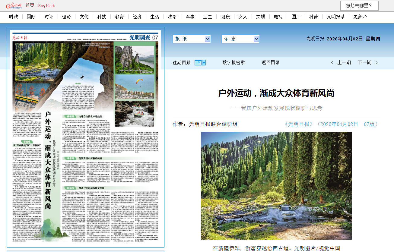《光明日报》(2026年04月02日 07版)转载——户外运动,渐成大众体育新风...
