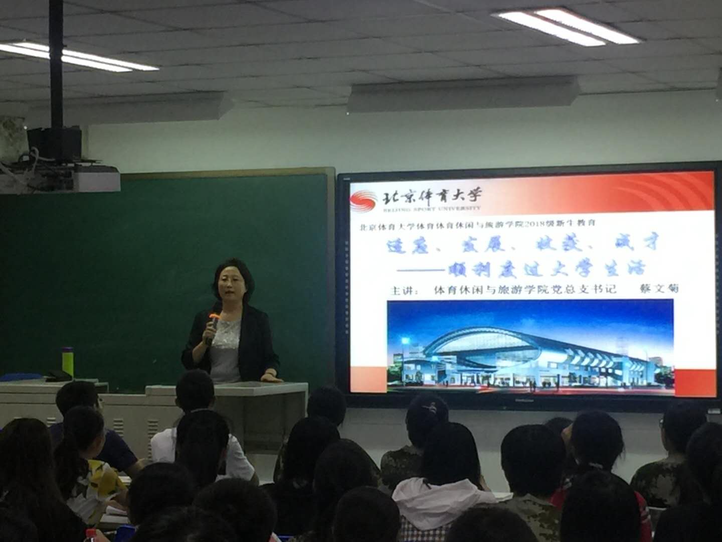 为帮助新同学们尽快适应大学生活,做好四年大学生活规划,鼓励新同学们立志成才,9月5日晚7时,体育休闲与旅游学院2018级在教学楼112组织开展了主题为“新时期怎样更好度过大学”的入学教育,党总支书记蔡文菊主讲,辅导员王思琪主持,研究生助管柏培玲、全体同学参加本次讲座。