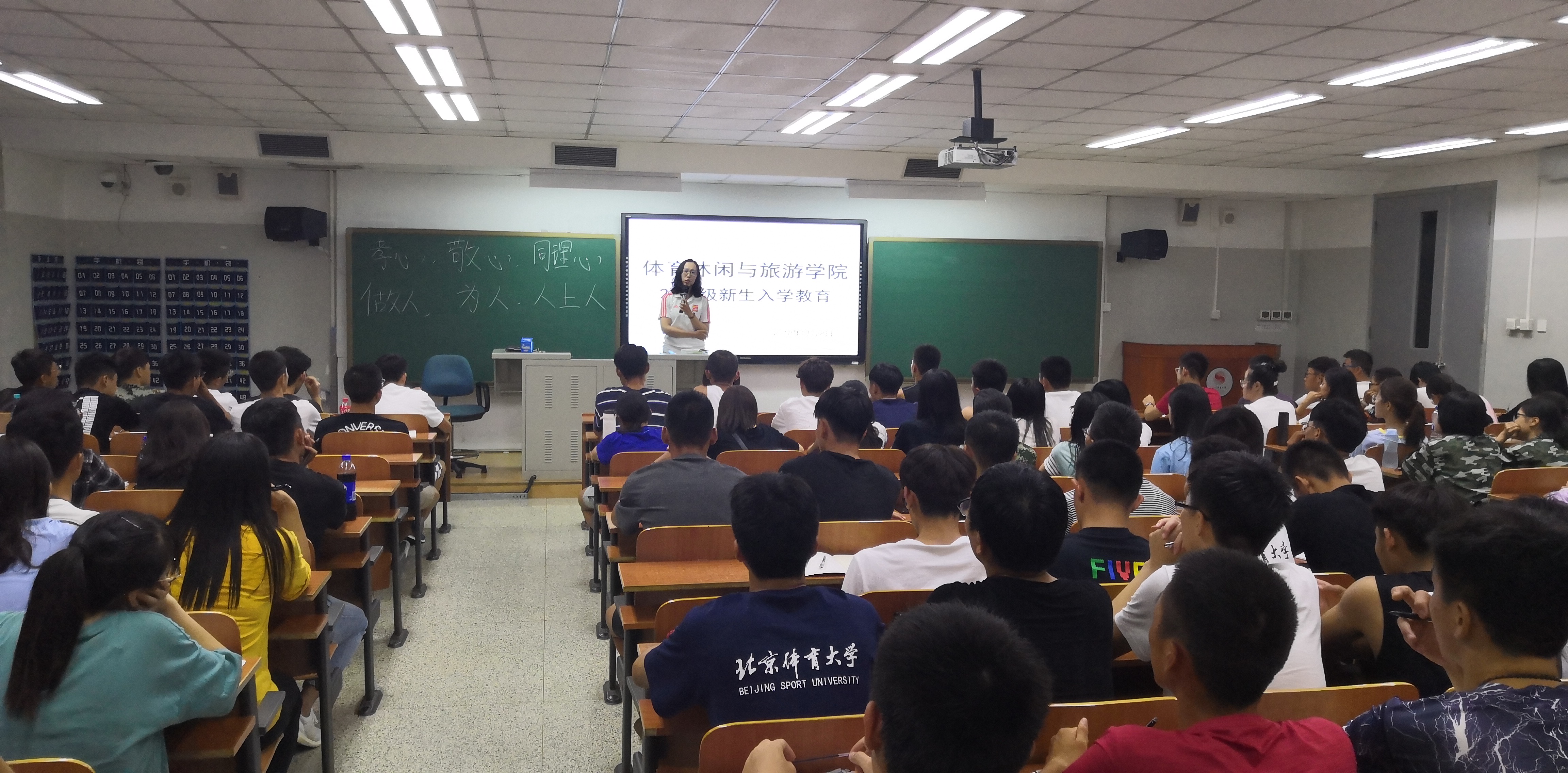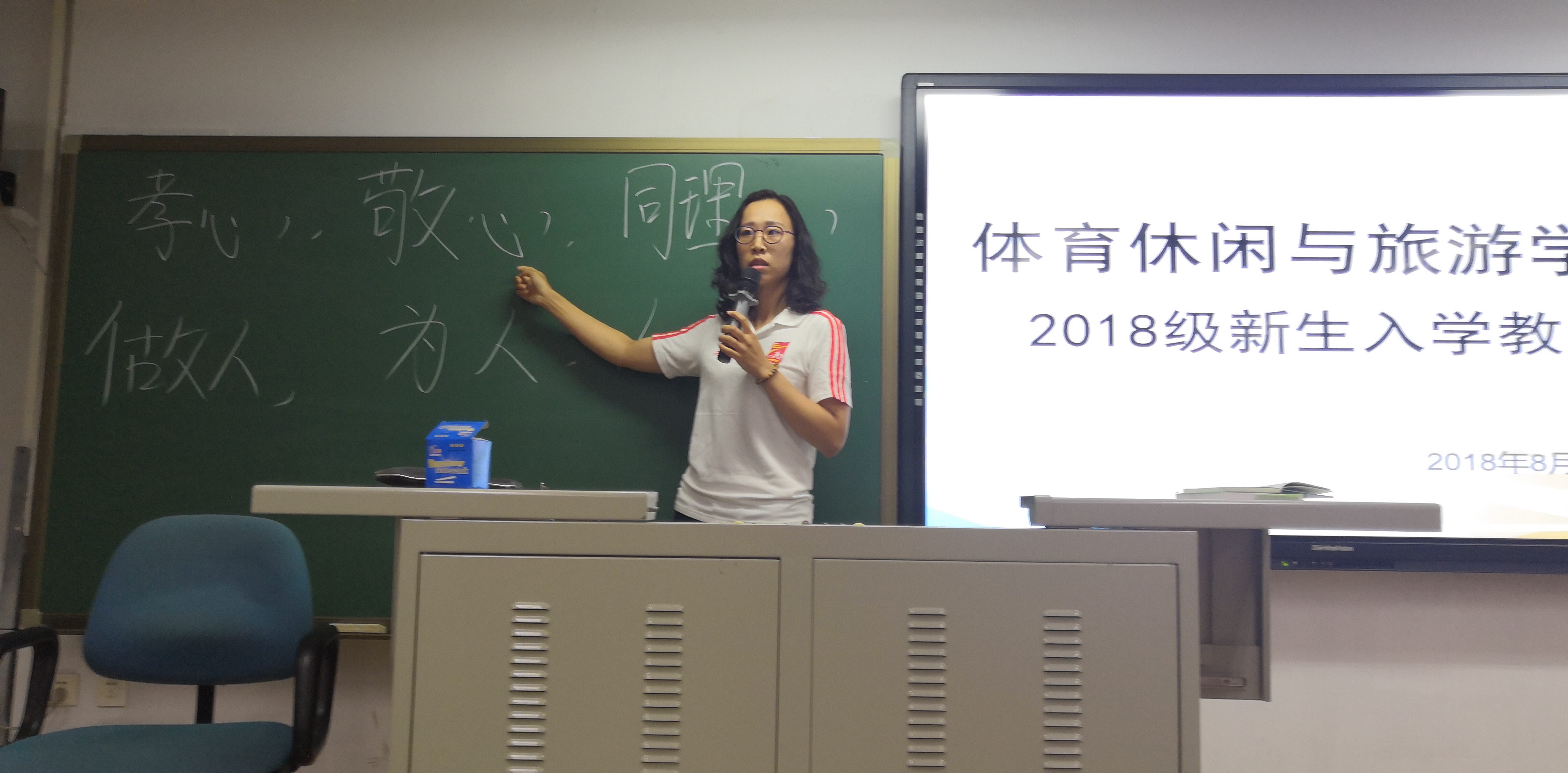 为帮助2018级新同学尽快适应大学生活,融入新的集体,2018年8月28日晚7:00,体育休闲与旅游学院2018级在教学楼412举行了新生入学教育活动,由2018级辅导员王思琪主讲,研究生助管柏培玲和全体新生出席。