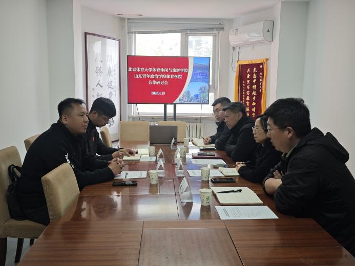 4月15日,山东青年政治学院体育学院院长衣海永、科研秘书方泰一行来访我院座谈交流。我院院长蒋依依、分党委书记牛志培、院长助理杨占东及户外休闲教研室主任布和等出席座谈会。
