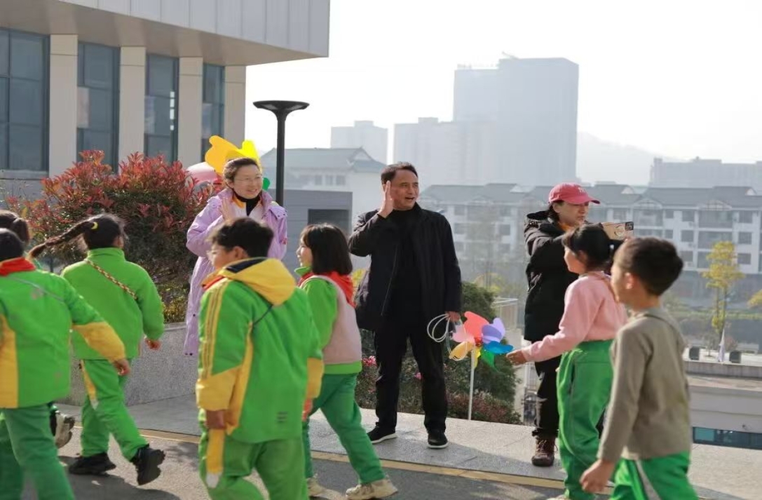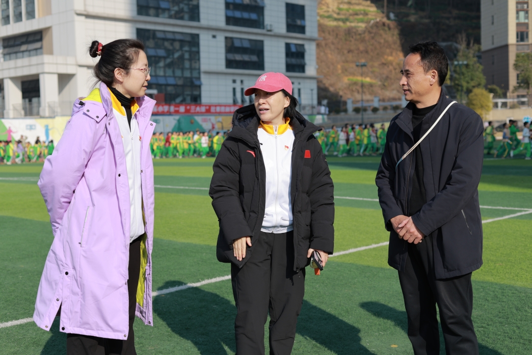 在极具地域风情的“阳光大课间”活动中,宣讲团成员不仅观摩了土家族摆手舞与现代体操的融合展示,更主动融入教学一线,开展互动式宣讲。