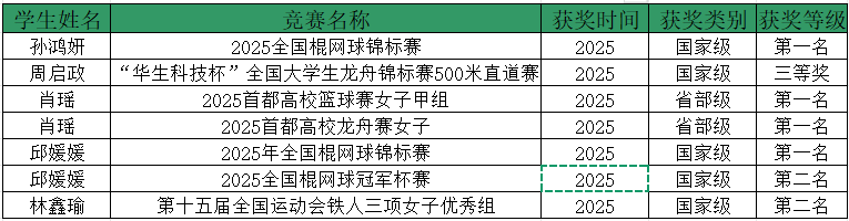 ü 2025全国棍网球锦标赛:女子U20组冠军,男子成人组季军。