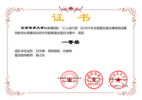 2025年,北京体育大学体育休闲与旅游学院坚持“立德树人、以体育人、以文化人”根本任务,紧密围绕“体育强国”“健康中国”战略,以知行合一为核心理念,深化“体教融合、产教融合、科教融汇”,在创新创业与训练竞赛方面成果丰硕,人才培养质量显著提升。