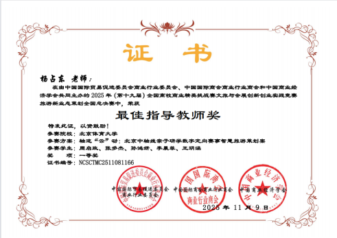 国际商务会展策划大赛荣获全国一等奖与新加坡国际赛入围奖 2025年(第十九届)全国高校商业精英挑战赛文旅与会展创新创业实践竞赛我院